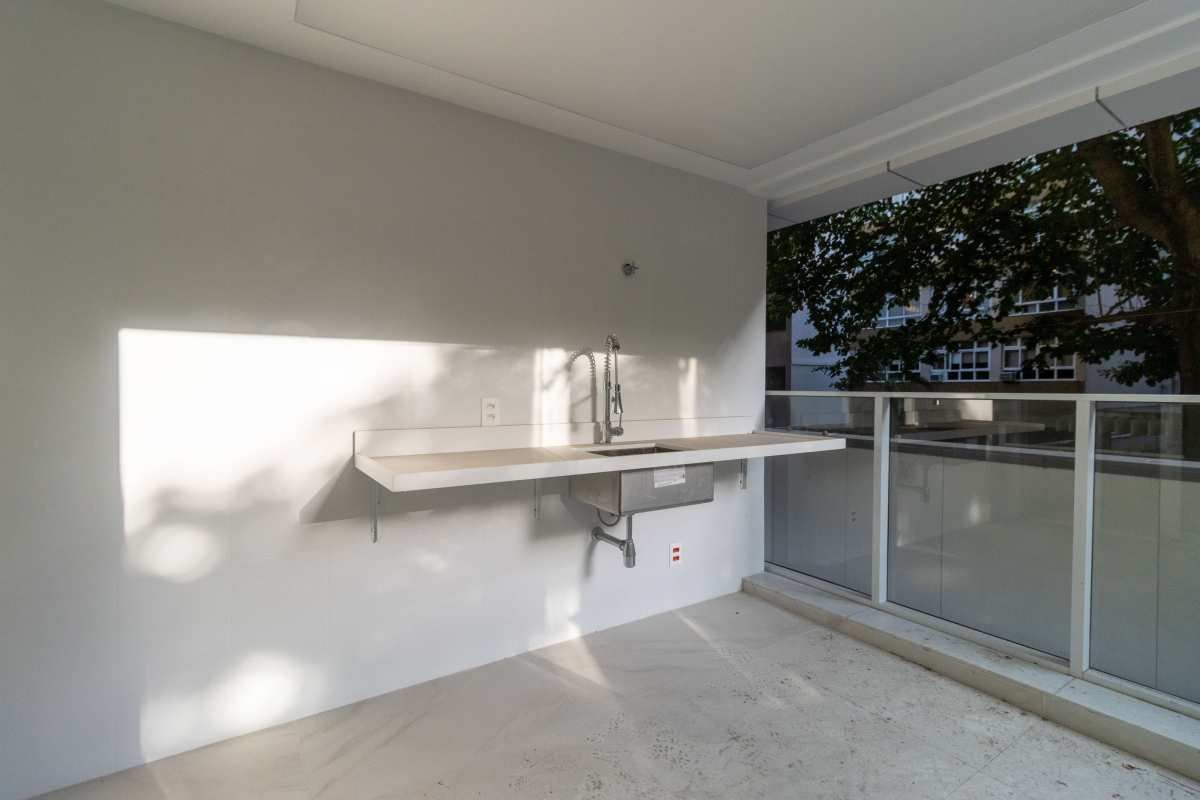 - Varanda gourmet com bancada em Silestone Branco, Cuba funda e Torneira Gourmet;