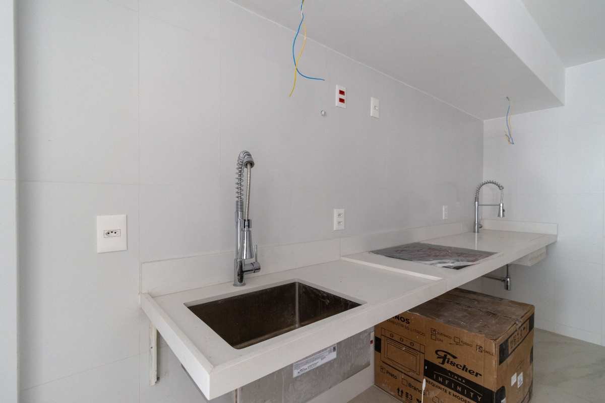 - Cozinha com bancada em Silestone Branco, Cuba funda e Torneira Gourmet;