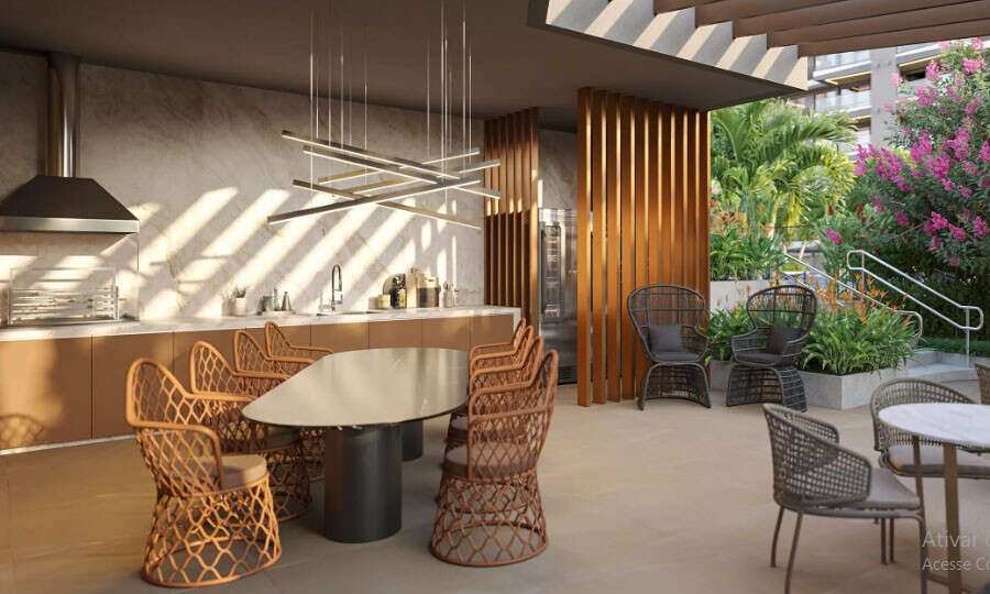 - Ampla varanda gourmet com previsão para churrasqueira e bancada de apoio;