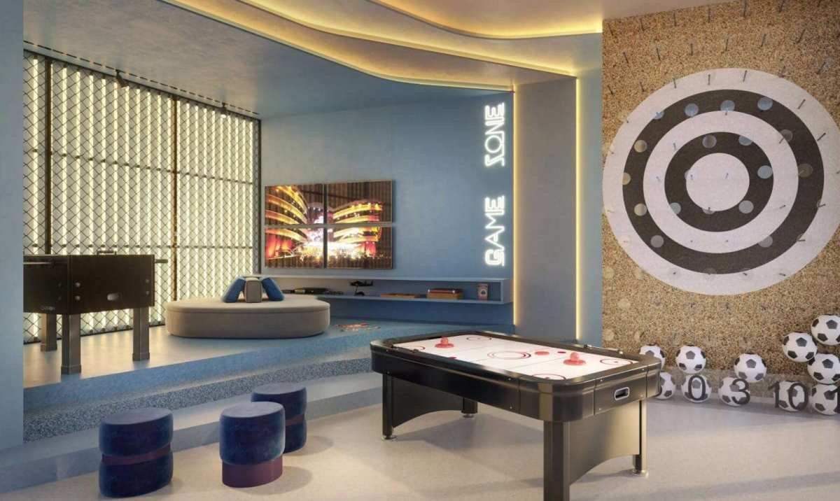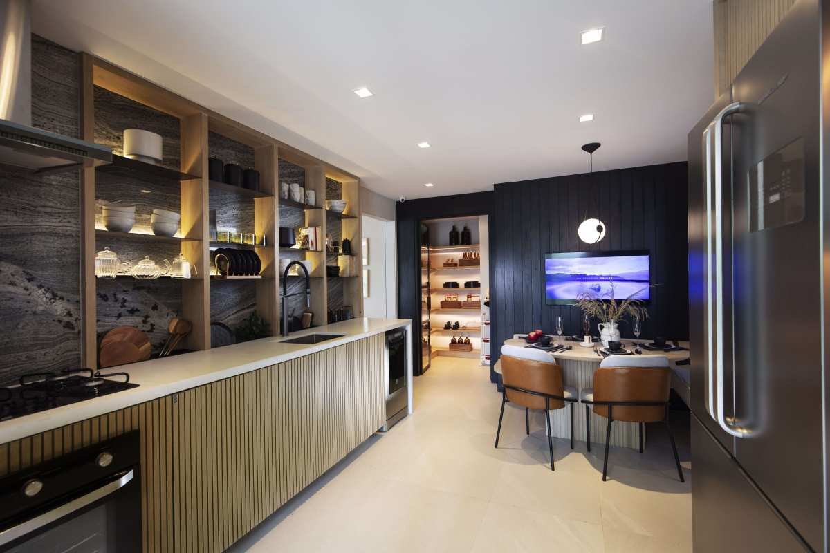 - Ampla varanda gourmet com previsão para kit bancada, cuba e churrasqueira;