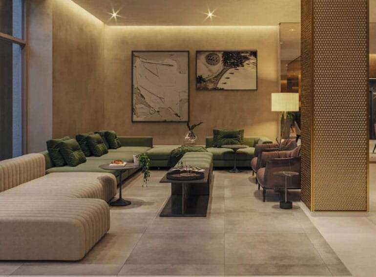 - Varanda gourmet com previsão para kit bancada, cuba e churrasqueira;