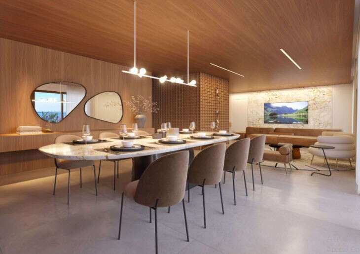 - Área gourmet completa com churrasqueira, forno para pizzas, refrigerador, mesas e cadeiras;