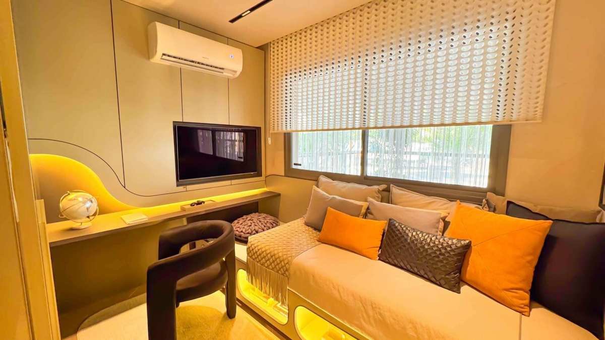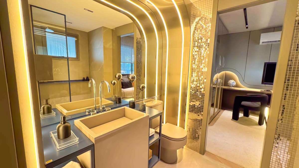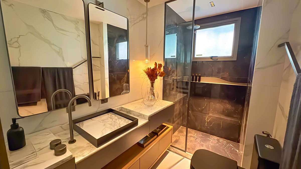 - Varanda gourmet com previsão para kit bancada, cuba e churrasqueira;