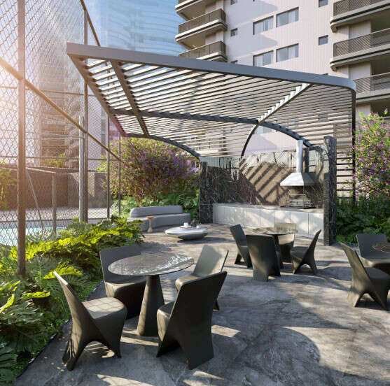 - Varanda gourmet com previsão para kit bancada, cuba e churrasqueira;