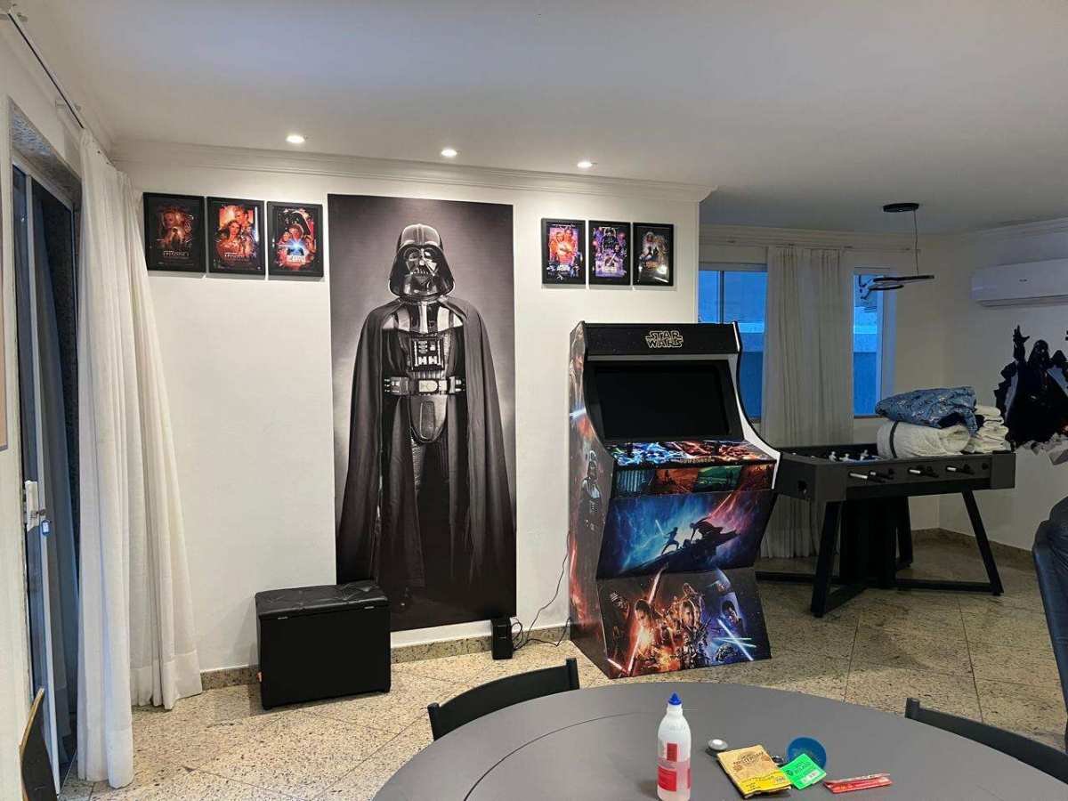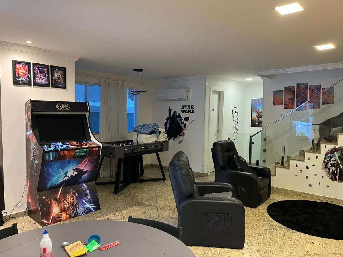- Ampla sala 2 ambientes com ar, rack painel, tv, mesa de poker, mesa de totó, fliperama e poltronas reclináveis;