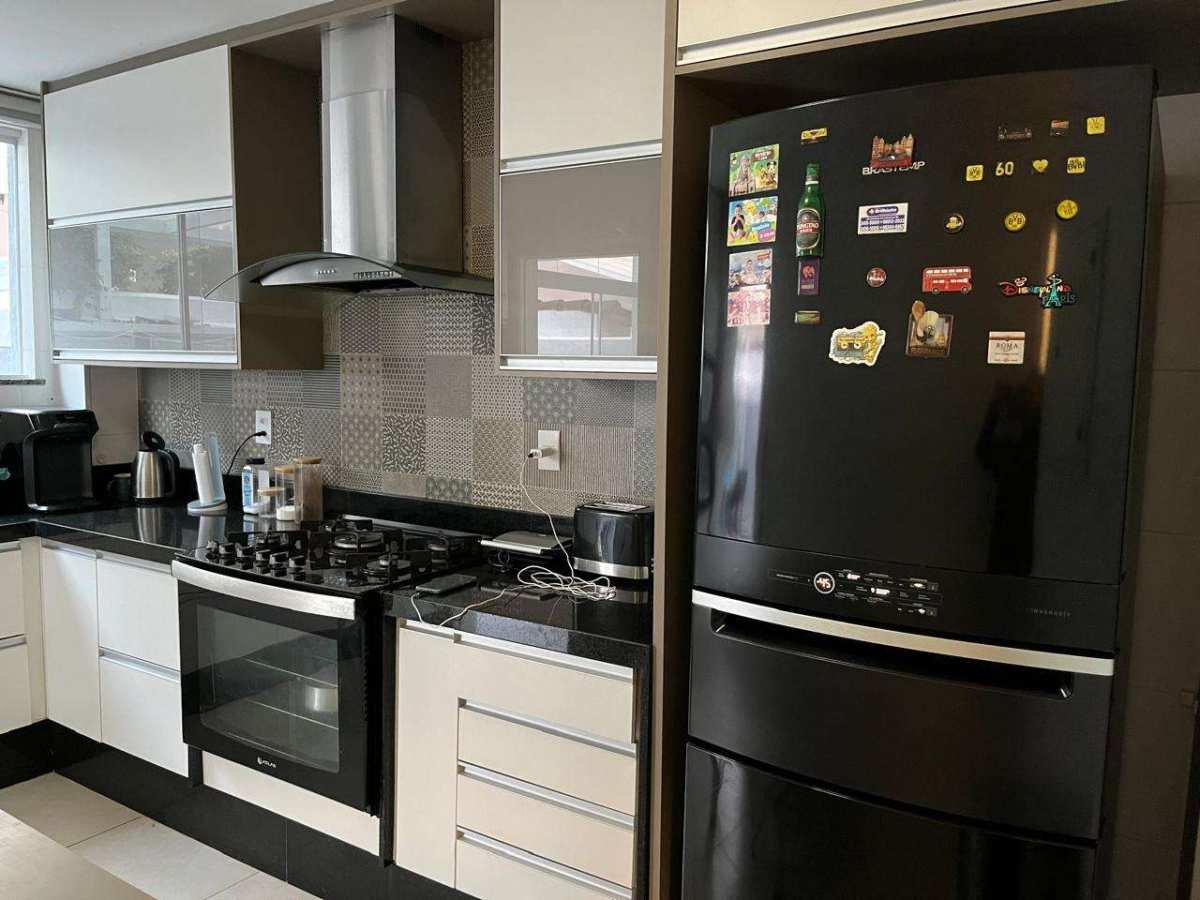 - Ampla copa cozinha repleta de armários sob medida, refrigerador linha black, cook-top, coifa, forno e micro-ondas embutidos além de mesa para 4 pessoas;