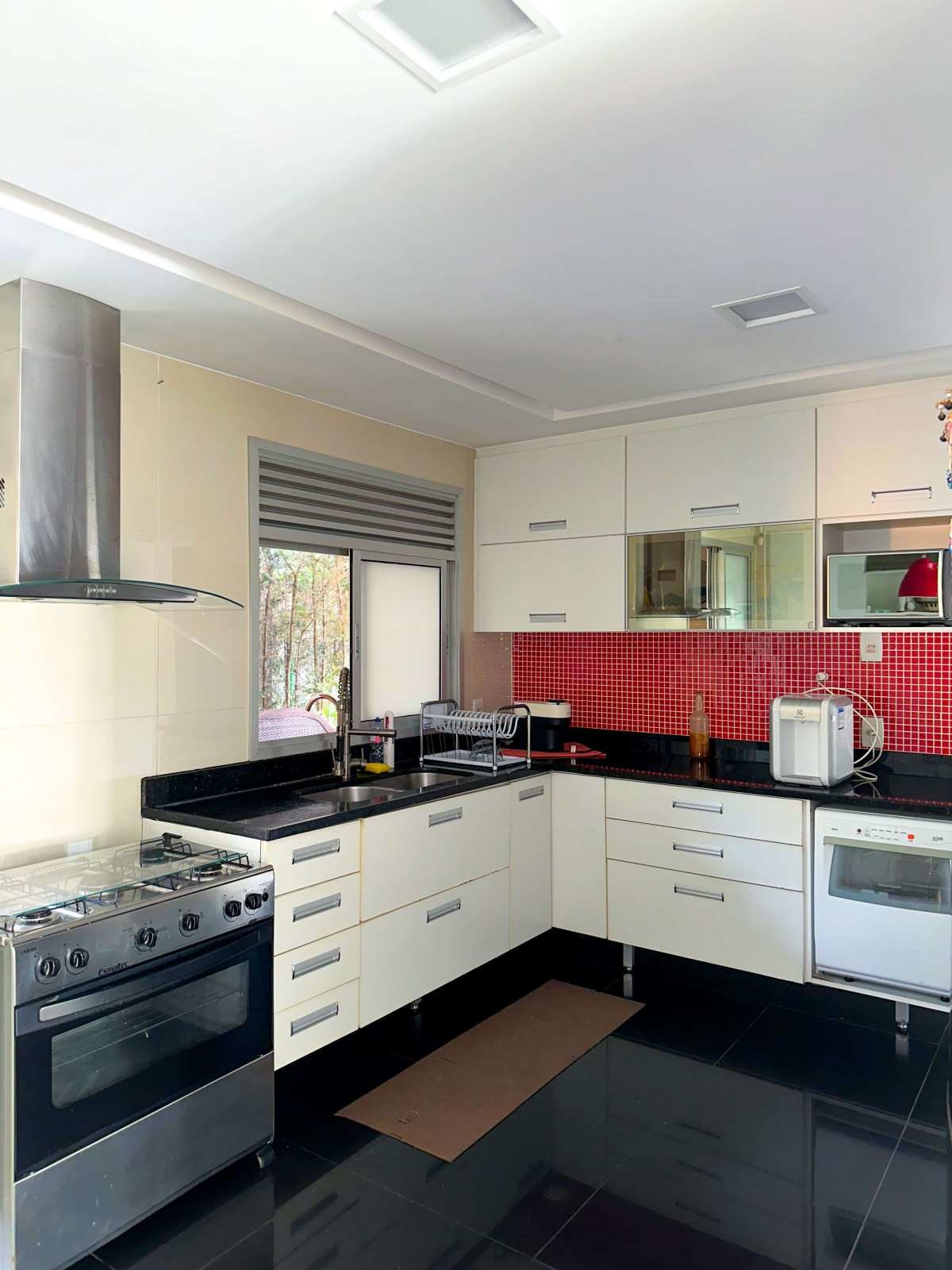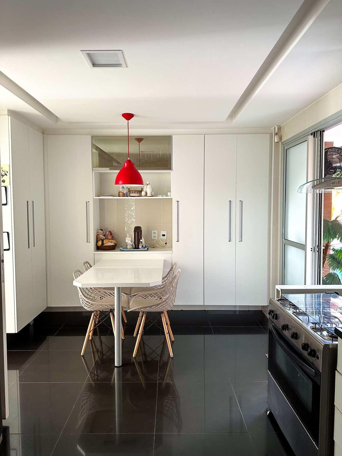 - Ampla cozinha com armários, coifa e mesa para 4;