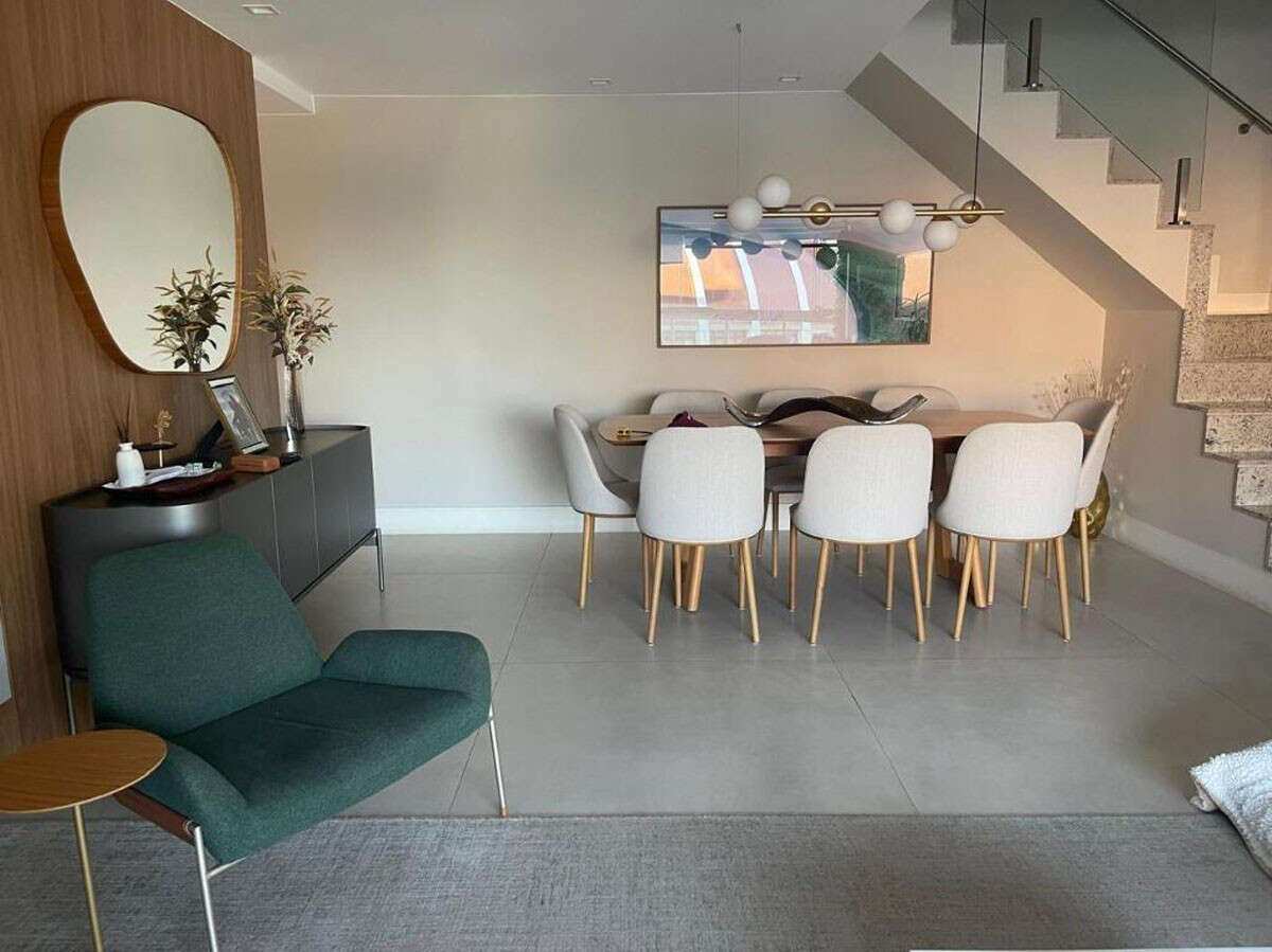 - Ampla sala 3 ambientes com teto com rebaixo em gesso, luz direta e indireta, ar split, rack painel com ilminação em LED e toda a parede revestida em madeira;